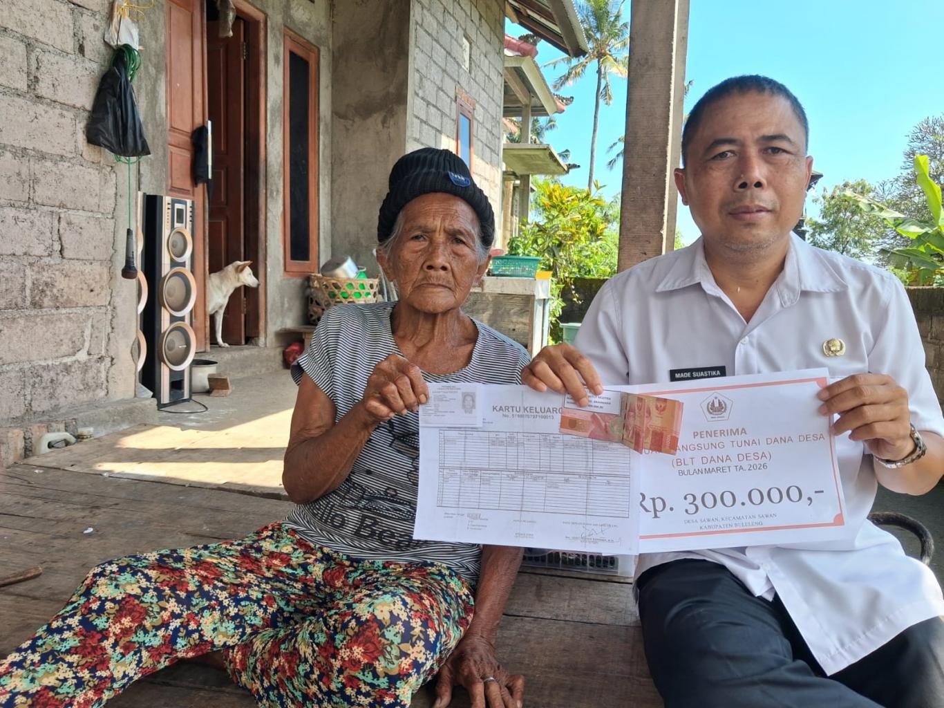 pada hari rabu, 1 april 2026 diadakan kegiatan penyaluran BLT DD untuk periode bulan januari, februari, dan maret 2026 kepada masyarakat miskin dan lansia sakit miskin sebanyak 12 orang dan diserahkan langsung oleh para kelian dusun dan didampingi petugas kecamatan sawan.